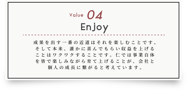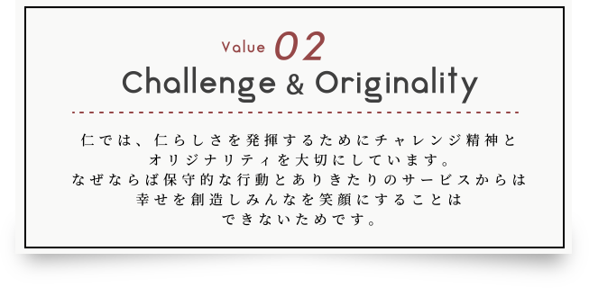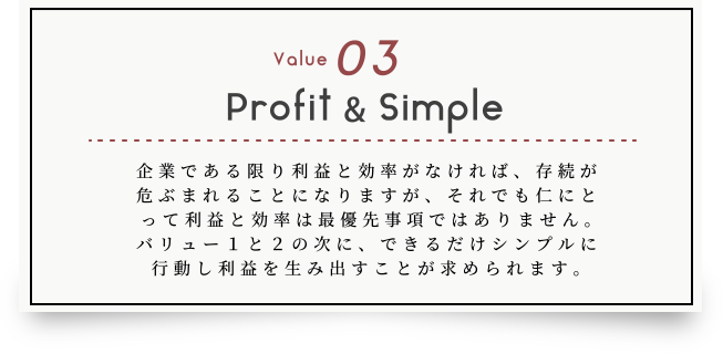 仁がミッションを達成するにあたり、会社全体で何を優先し大切にするかを定めた価値基準。